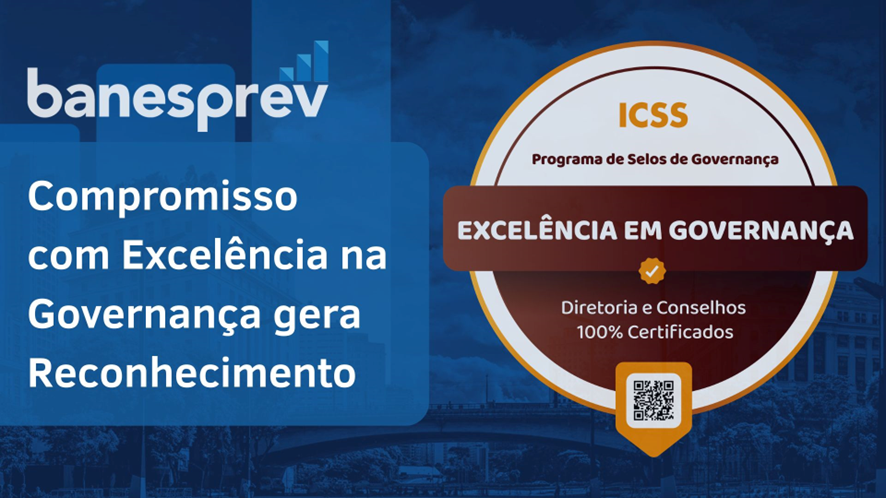 É com satisfação que comunicamos que o Banesprev foi reconhecido pelo Instituto de Certificação em Seguridade Social (ICSS), no âmbito do Programa de Selos ICSS de Governança e Gestão Certificada, alcançando o Selo de Excelência em Governança.